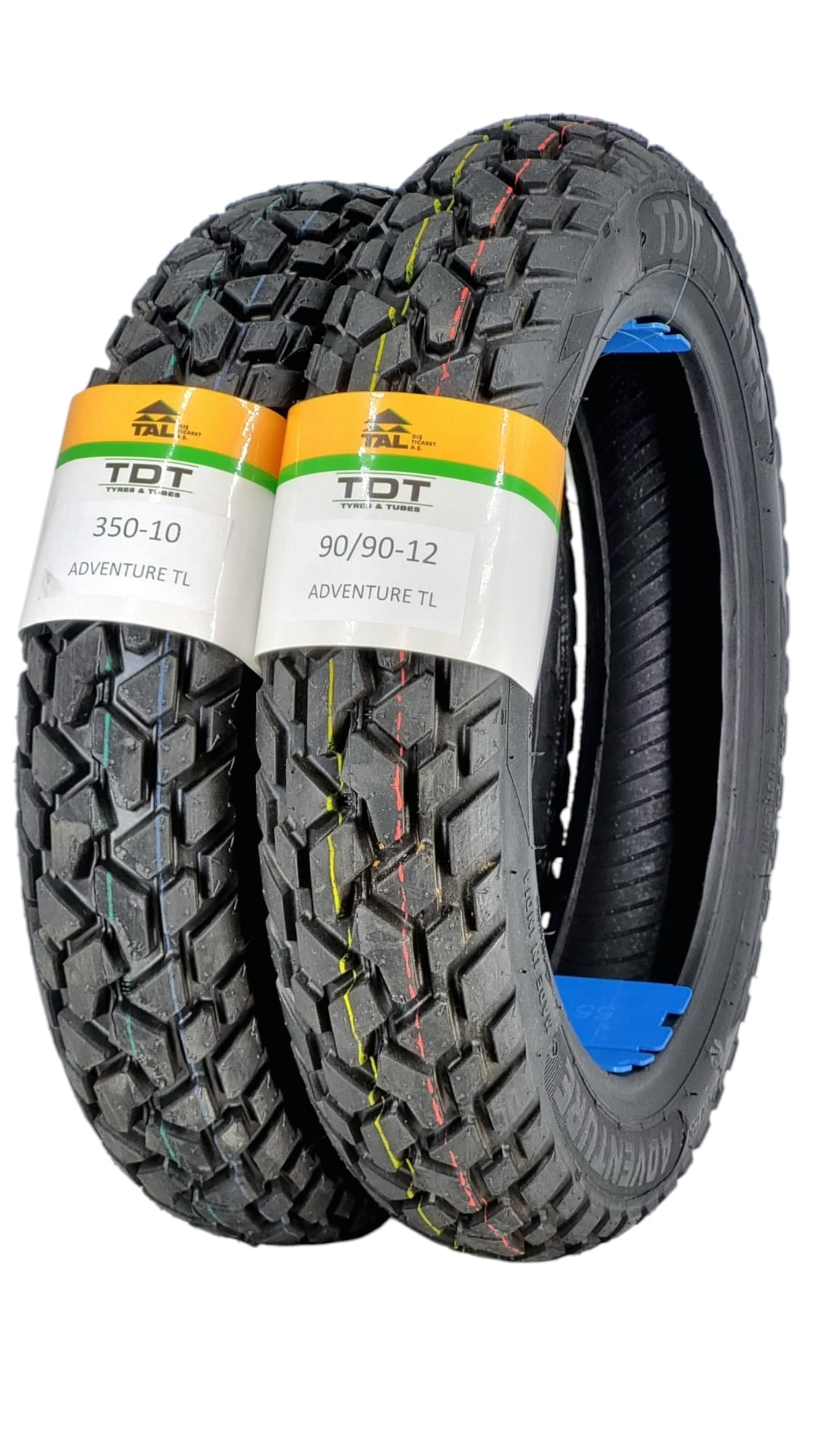 TDT TYRES 350-10 VE 90/90-12 MOTOSİKLET LASTİĞİ TL (TUBELESS - DUBLEKS) ADVENTURE